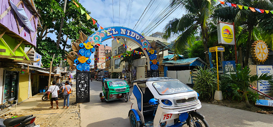 Le trajet en tuktuk de l’aéroport jusqu’à El Nido vous coutera environ 5 euros, ça reste très correct. Mon hotel, qui est en fait une petite guest house, se trouve exactement à mi chemin entre la plage de El Nido et la plage Corong Corong, et c’est justement ce qu’on va essayer de comparer dans cette vidéo, ce sont 2 plages très différentes. Ici vous allez trouver essentiellement des 2 roues et des tuktuks. Cela reste relativement bruyant, donc si vous voulez du calme, ce n’est pas l’endroit idéal. Les routes sont un peu défoncées, mais ça fait partie aussi du dépaysement.